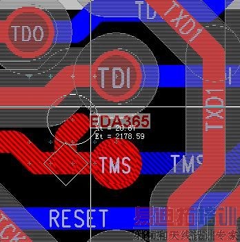 2.这是TMS布线的时候,TDI过孔周围显示的间距(8mil)