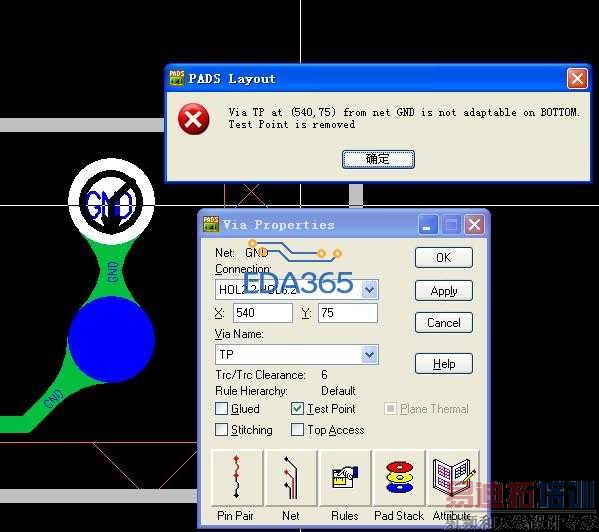 TP测试点都做好了,要将其变成测试点死活不肯(提示什么背面没有焊盘连接,背面本来就没有做焊盘的),上图,请高手赐教,谢谢!