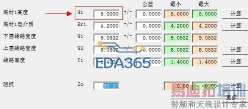 四层板,四层走线,top层天线阻抗匹配50ohm,用si8000计算的时候,底材高度要如何确定呢