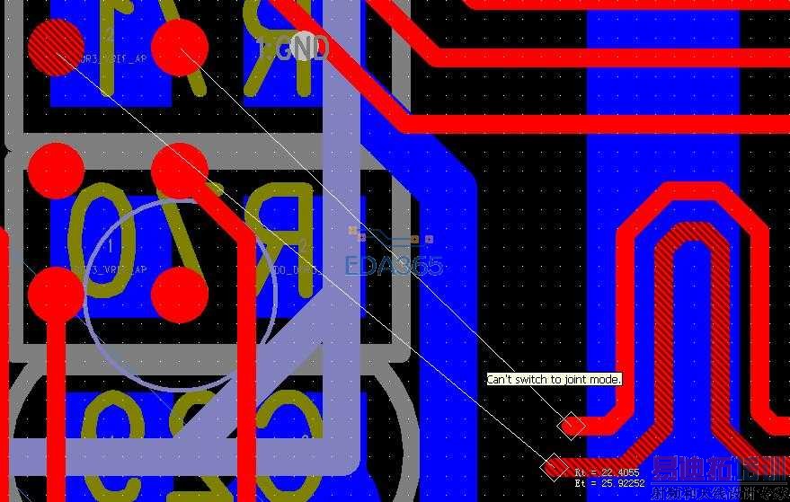 我先删除了BGA上的那段走线,然后就像从右边拉线到左边,发现就是走不了差分对,哪位大侠帮我分析下可能什么情况。