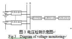 蓄电池作为备用电源与整个直流供电系统的可靠性密不可分,因此保证蓄电池的正常运行是整个直流电源系统的首要任务[5]。本文通过电池巡检模块对电池组中每节电池的端电压、电流、温度进行巡检,并将结果通过RS485总线传送给综合监控模块。若某一节蓄电池电压低于或高于指定值,则由综合监控模块发出报警指示,并自动进行必要的操作;若电池组电流过高,则指示充电模块停止充电;若电流过低,表明该蓄电池的性能变差或过度放电,则指示充电模块进行充电。从而能够对电池进行维护,延长电池使用寿命,确保系统安全可靠运行。本电池巡检模块最多可检测24节单体电池电压,可分别检测2、6、12V单体电池,测量精度为0.2%,其原理如图2所示。