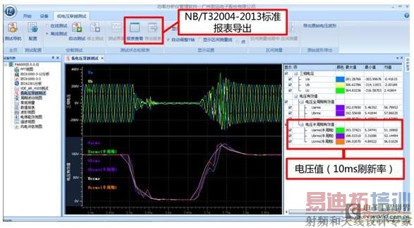 传统的低电压穿越测试步骤繁琐,需要人工记录大量数据和计算,十分耗时。PA功率分析仪标配的PC端测试管理软件PAM首创低电压穿越自动测试功能,符合NB/T 32004-2013标准的测试要求,完美实现整个测试的自动化数据记录,并可快速导出标准报表,大幅提高了测试的效率。