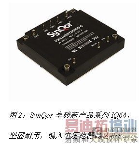 图2:SynQor半砖新产品系列IQ64,坚固耐用,输入电压范围高达8:1。
