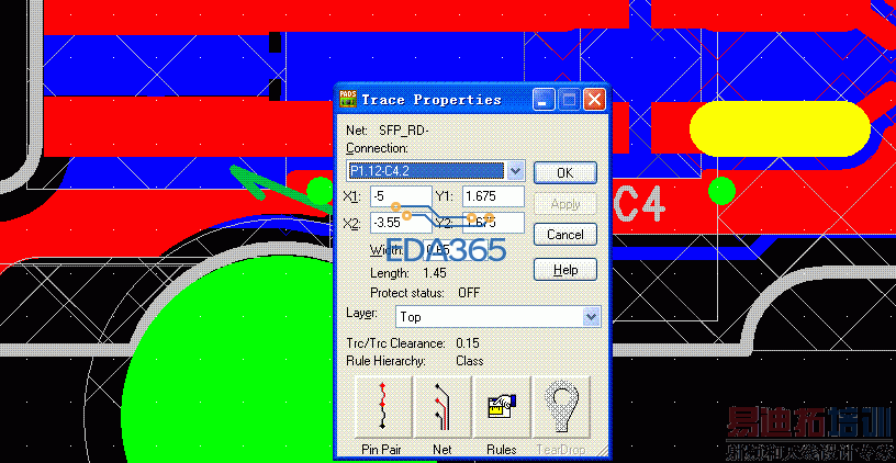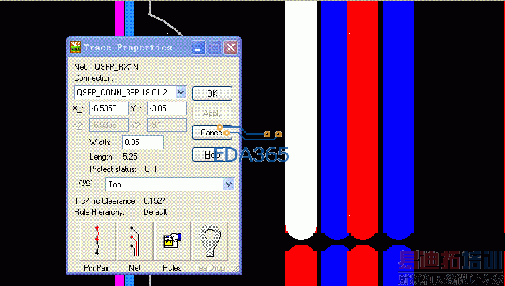 hujzh888 发表于 2012-7-2 13:00 看你图中的TRACE不是直接连接在PIN上的。可能是这样的:先用小线宽在pin上连一小段,再加宽线宽到PIN的宽度。引到另外一端后再改小宽度连接到下一个PIN上。试试看。 恩 按照您的方法解决了 非常感谢