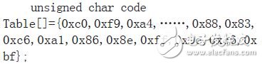 本产品采用六个共阳极数码管制作了本显示器。设计共阳极数码管显示代码表如下: