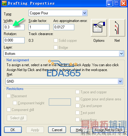 在画board cut out和board outline时,在Drafting Properties对话框中,更改width项后不起作用,在pcb中线宽还是默认的0.0254,不知道是不是哪没有设置好。如图1所示: