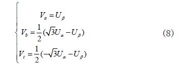 如果Va>0,则A=1否则A=0;如果Vb>0,则B=1否则B=0;如果Vc>0,则C=1否则C=0.扇区计算公式为: