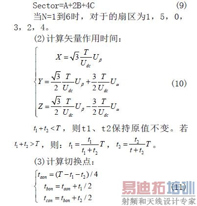 主要包括通过逆变器确定矢量所在的扇区,合成矢量分解到相邻扇区的作用时间,计算电压空间矢量的切换点。