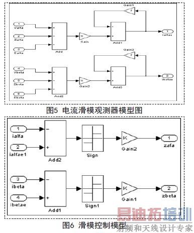 转子角度的计算步骤为:电流观测器(图4示意图),滑模控制(图5到图7示意图),以及反电动势的计算图。