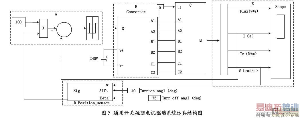 图5 所示为通用开关磁阻电机驱动系统仿真结构图。