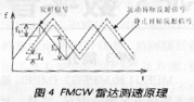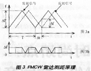 如果反射信号来自一个相对运动的目标,则反射信号中包括一个由目标的相对运动所引起的多谱勒频移fd(如图4)。在三角波的上升沿和下降沿输出中频频率可分别表示为