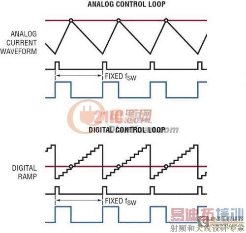 图 2:LTC3880 的模拟控制环路与数字控制环路的比较