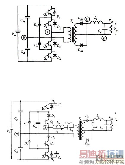 全桥变换器在大功率场合是最常用了,特别是移项ZVS和ZVZCS 接下去,会收集一些三电平变换器贴出来,在以后就给出boost族的 隔离变换器....反激变换器.....正反激变换器......APFC.....PPFC.... 单级PFC.....谐振变换器等.....