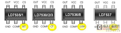 目前通嘉已有开发类似的IC,例如CS接脚与补偿接脚功能共用脚位,如此即可省下一个空脚位做其他应用;另外在功能脚位上与过温保护功能共用同一脚位,形成所谓的复合功能脚位,可达到六接脚 IC同时具有此两大功能的效果。
