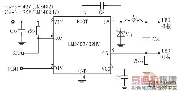 图1 LM3402的典型应用电路示意图