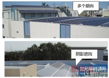 3.多个朝向的屋顶,电池板有部分阴影遮挡导致组串的不一致性,单路MPPT导致发电量相对较低;同时,各路组串的失配损失也将导致发电量的损失;