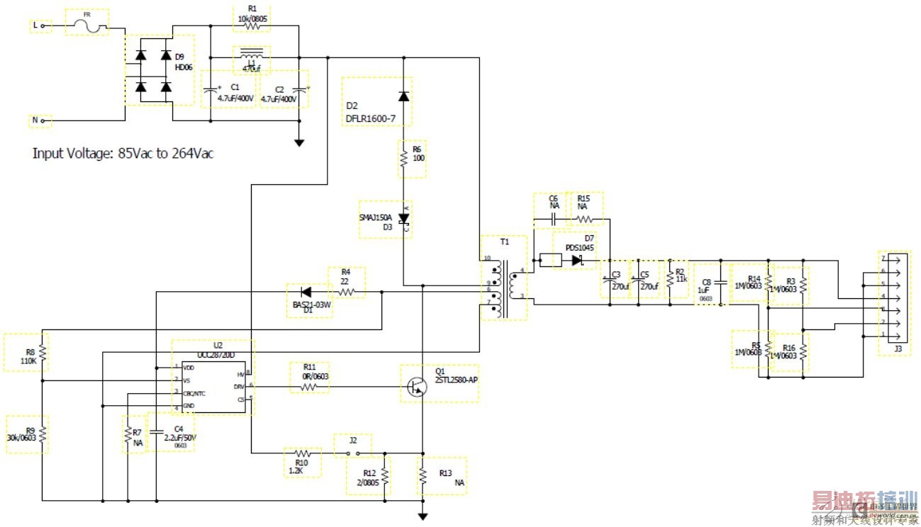 Figure 1:5W无Y电容充电器原理图