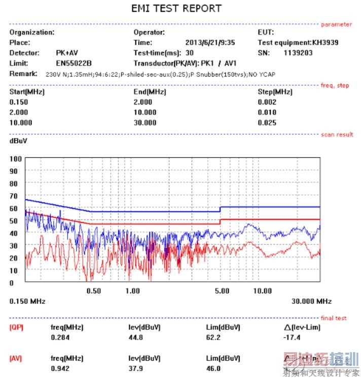 当然,EMI 特性跟很多因素有关,本设计中有效的变压器结构不一定适用于其它的设计,但无论如何,都可以给后面的设计作一个参考和思路。