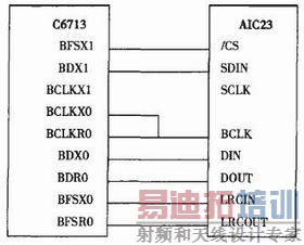 图2 TMS320C6713与TLV320AIC23的硬件连接