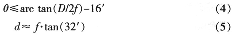 由式(4)和式(5)可知,在光电池直径恒定,且光斑完全落在光电池上时,若焦距f越大,则d越大,θ越小。即焦距越长,太阳像越大,光电池能检测的太阳光线范围越小。