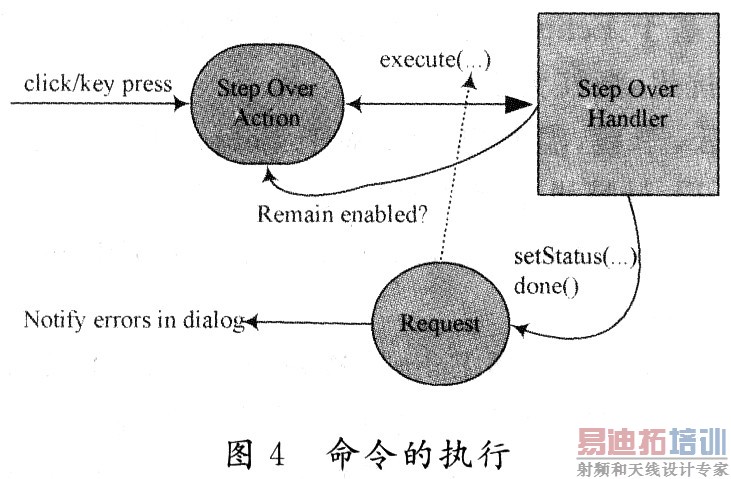 处理者和命令处理之间的交互是异步的。需要先更新使能状态,然后开始执行。传递到命令处理的是一个IRequest对象,实现接收状态,允许取消,当请求结束时通知等功能。