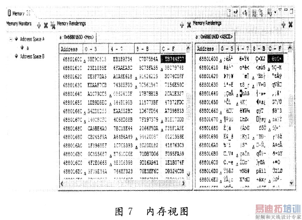 内存视图显示一段内存中的内容。内存显示由内存块、内存块内容重新获取、内存块管理器、内存块描述类型、内存块描述、内存块描述绑定、内存块描述管理器等几部分组成。