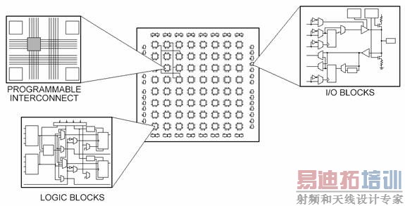 每一块FPGA芯片都是由有限多个带有可编程连接的预定义源组成来实现一种可重构数字电路。
