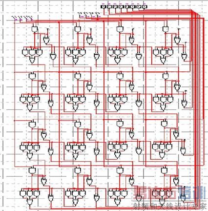 看起来简单的两数相乘运算在数字电路中实现起来是十分复杂的,也是极为消耗资源的。为提供相关参考,图14所示是一种使用组合逻辑电路实现4×4字节乘数器的示意图。
