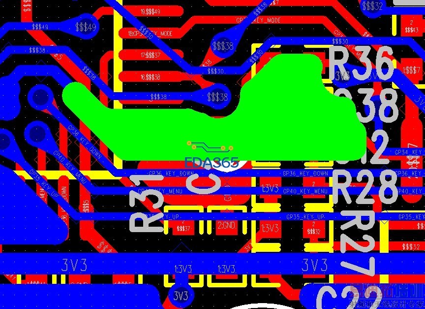 编号放在过孔如:C5,R36,C38......