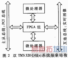 实时图像处理技术在目标跟踪、机器人导航、辅助驾驶、智能交通监控中都得到越来越多的应用。由于图像处理的数据量大,数据处理相关性高,实时的应用环境决定严格的帧、场时间限制,因此实时图像处理系统必须具有强大的运算能力。各种高性能DSP不仅可以满足运算性能方面的需要,而且由于DSP的可编程性,还可以在硬件一级获得系统设计的极大灵活性。为了获得足够的计算能力,我们以两片TMS320C6201作为系统的运算中心构筑了实时图像处理系统;为了获取最的灵活性,在系统体系机构上采用了一种可重构的FPGA计算系统模型。