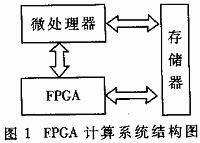 在通常的并行系统设计,微处理器在空间维上是固定的,而在时间维上是可变的;而连接的专用芯片在空间维和时间维上都是固定的。这样的系统往往只能适用于特定应用场合下的特定算法。为了使系统具有更加优良的性能和灵活性,随着可编程器件FPGA的应用深入,一种新的通用处理模块结构呈现在我们面前——FPGA计算系统结构。图1给出了抽象的FPGA计算系统模型,该模型由微处理器、FPGA以及存储器等三部分构成系统的核心。FPGA计算系统就是充分利用FPGA的高集成度和硬件可编程性在系统中用FPGA实现除了必要模块(如微处理器和存储器等)之外的其它逻辑和硬件互连,从而使系统具有空间上的可编程性。系统的空间可编程性是FPGA计算系统引入的新特征。它是指通过对FPGA的重新编程和配置来改变系统体系结构等一系列硬件逻辑结构。系统的空间可编程性是系统可重构的前提,它使得硬件系统的设计趋于软件编程化。然而需要指出的是,由于FPGA内部结构的完全分布性和内部单元的百分之百的互连连通性,系统的硬件互连编程不象由中央处理单元引起的软件编程那样可以充分总结指令集。但在具体的系统设计中,可以根据实际的数据流结构进行部分限制,这样可以为用户提供一些可选择的重构方案,方便用户使用。