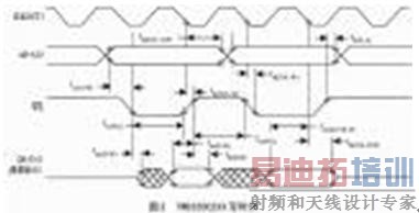 经过详细的时序分析发现,大部分问题可以通过在DSP固件设计的加入延时,或者设置DSP的WSGR寄存器来解决。但是有一个问题,必须在硬件上加以解决。图2是DSP(TMS320C2XX)的写时序。