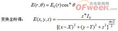 LED的光强分布不是一个理想的余弦分布,该分布可以表示为: ![]()