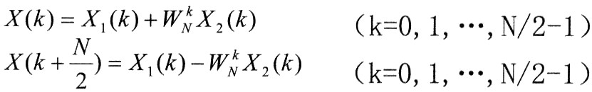 于X1(k)和X2(k)均以N/2为周期,且WN k+N/2=-WN k,所以X(k)又可表示为: