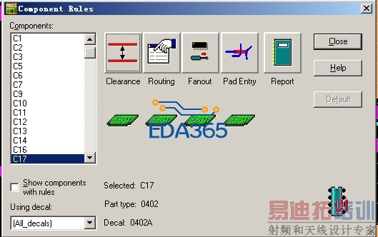 PADS如何设置单个元件与铺铜的间距