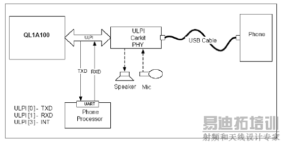 图4.QL1A100和ULPI HS PHY/USB 1.1串行收发器的连接框图