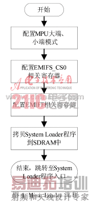 该部分为传统意义上的Boot Loader过程,完成硬件环境相关设置及初始化,并将操作系统载入到RAM中运行。需要注意的是,MPU本身的中断向量表须载入到内部SRAM中,其他操作系统部分可以载入到外部SDRAM中。