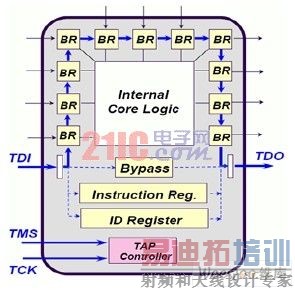 JTAG技术即边界扫描技术,是一种专用的电子系统测试技术,就是通常所指的 IEEE1149.1标准,已经在各行业中得到了广泛的应用,如图 1,一个符合 IEEE1149.1标准的 JTAG器件,有别于不同的逻辑器件,内部都包括一个 TAP(测试访问端口)控制器,其次在芯片内部经由一个扫描链路将所有的输入和输出管脚全部串入一个扫描链路。