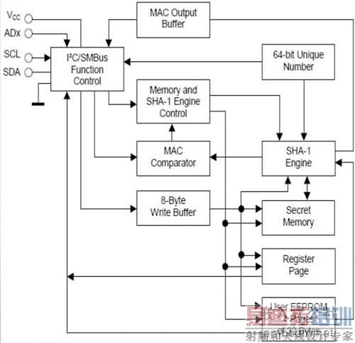 最近,模拟与混合信号IC开发和制造商Maxim公司推介了一系列安全器件和安全单片机。Maxim公司现有三款SHA-1器件:DS28E01-100,DS28CN01和DS2460。这些安全器件的性能示于表1。其中DS28CN01功能框图示于图1。