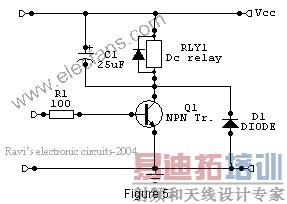 A better method is to connect two diodes (as shown in the figure 5) that stop the relay – transistor junction swinging more than 600mV above the positive rail or below the zero-volt rail. During normal operation the diodes are reverse biased and have no effect on the performance of circuit. But when back emf is induced, the diodes conduct heavily and absorb all transient voltages. However, I have employed the both methods.