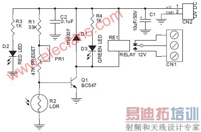 Dark Sensitive Switch is a simple project which operates a relay when the light falling on the LDR goes below a set point.