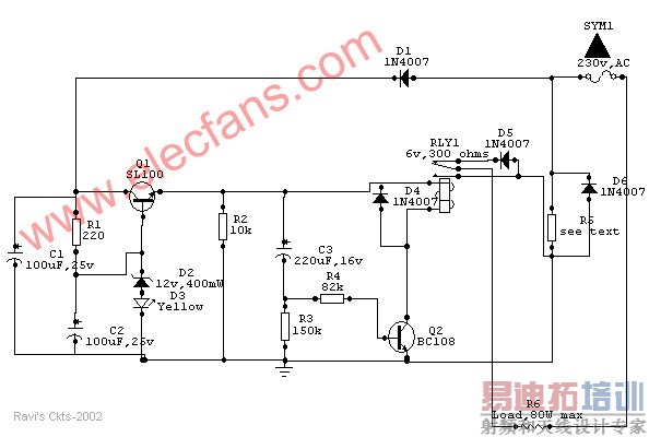 The above circuit solves this problem in a simple and inexpensive way and could be used to various types of loads up to 80watts.