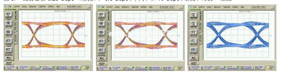 图3. 发射器在6.25 Gbps (左侧)、8.5 Gbps( 中间) 和10 Gbps( 右侧) 时的“眼图”对100 Gbps 的需求网络带宽快速增长的主要动力来自xDSL、FTTx、WiMAX 和3G/4G 平台越来越多的宽带用户。IPTV、VoIP 和在线游戏等网络带宽应用,以及大量的在线用户访问视频点播网站,也影响了对更大带宽的需求。
