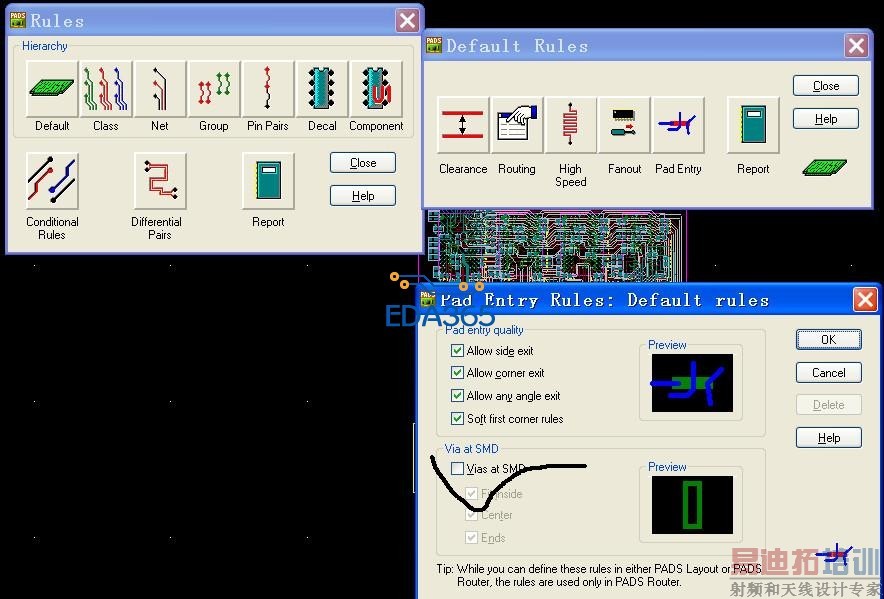 把盲孔想打到PAD上,打不上去,报出的信息 Violation detected