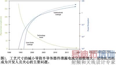 工艺尺寸不断缩小的结果之一是导致待机功耗成为芯片总功耗中的重要因素。同时,芯片用户关心的问题从动态功耗转向待机功耗。由于待机功耗的增大,许多通信器件分开考虑总功耗预算和待机功耗预算,并逐步增加待机功耗预算的比例。由于这些器件大部分时间处于待机模式,因此,待机功耗成为最主要的问题。
