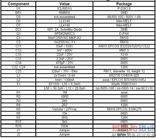 EVAL-LED-ICL8001G-Bulb02演示板材料清单(BOM):