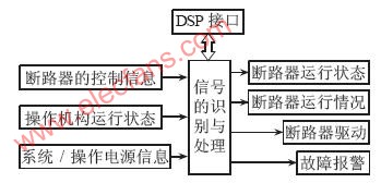 由于该智能控制单元主要是控制断路器的关合,而断路器的关合过程中会产生强的电磁效应,如果直接由DSP的GPIO管脚驱动,外部电磁干扰有可能使DSP的程序跑飞或使DSP复位,严重影响执行后果,所以系统中开关量的输入/输出均由CPLD完成,其可靠程度将加强。