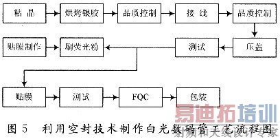 利用空封技术研制的白光数码管,采用贴膜工艺,可以避免环氧树脂的污染。去掉高温封胶工序,制造产品的基本节能在原来的一半以上,成本降低显著,有利于扩大市场竞争力。