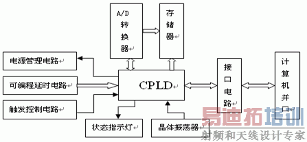 图2中A/D转换器采用AD7470。它的启动转换输入端CONVST由主时钟分频得到且采样频率可编程。可编程延时电路是通过一个四路拨码开关对CPLD输入不同的电平组合实现的,通过设定CPLD数字逻辑对产生延时计数时钟的1MHz晶振计数,输入不同的电平组合从而译码产生不同的延迟时间,而更改电平组合只需对记录仪的面板操作即可。CPLD器件配以ISE开发系统可完成设计输入、编译、验证及编程,设计校验可进行完整的模拟, 最坏情况下的定时分析和功能测试。设计人员无需编程器就可重构数字系统,具有“硬件软做”的特点。 [p]