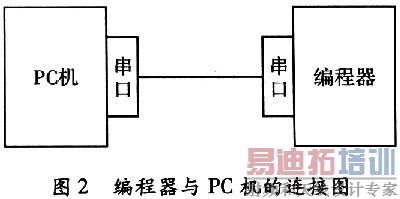 当整个系统的调试完成后,就可以使用编程器将源程序写入单片机AT89C52,用AT89C52替换仿真器,运行无误,即可完成系统的整个设计。图2是编程器与PC机的连接图。